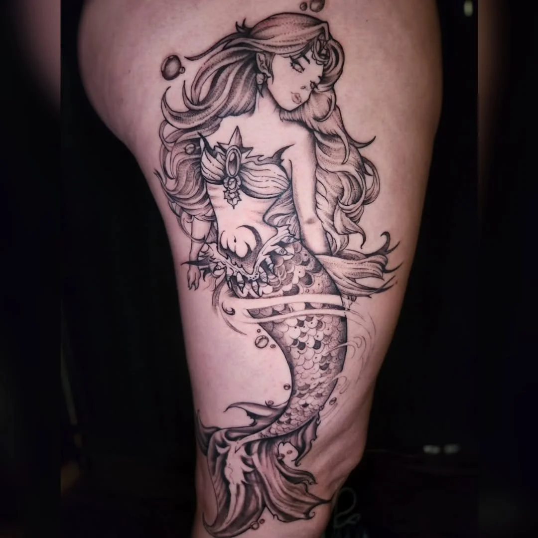 has a passion for art that began with sketches, evolving through gallery shows and trades into a tattoo apprenticeship in 2017. Now one of the creative minds at Aptitude Tattoo, specializing in custom designs that fuse bold colors, anime energy, Japanese influences, and floral semi-realism. Dedicated to transforming ideas into vibrant, personal tattoos, Danny creates artwork that lives on skin.