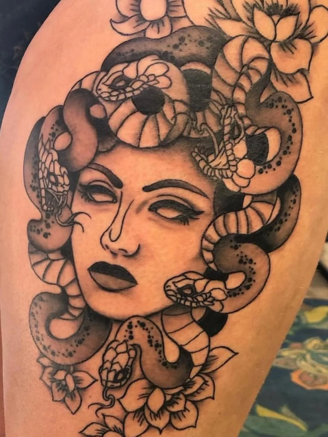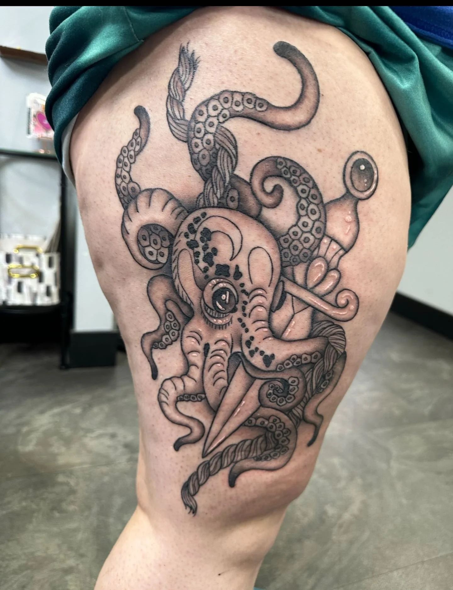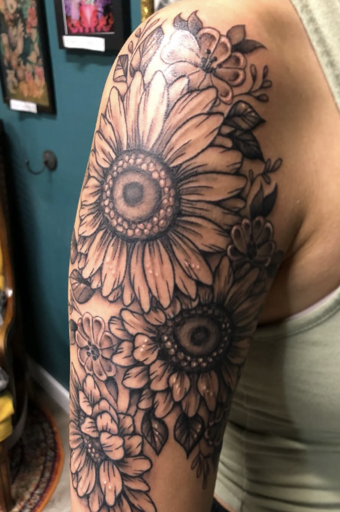 Lindsey Bendsey earned her Bachelor of Fine Arts from K-State in 2015. While going to school, she began her journey working in the tattoo industry. Her lifelong passion for art led to a blossoming tattoo career that began in 2018. She specializes in Neo-Traditional designs, both black and grey and color. She loves taking her clients ideas, no matter how big or small the tattoo, and bringing them to life. She also loves expertly crafting many pre-drawn designs that her clients can choose from. Her work is a unique and creative style reminiscent of a fairytale. She loves the strange and the beautiful, especially when the two intersect. View her available pre-drawn designs on her Instagram or send her an email to discuss your own idea. lindseybendsey@gmail.com